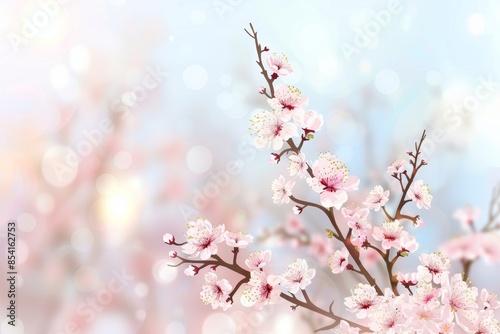 © Gro, Fototapeta premium Blooming Cherry Blossom Branch for Spring Decor Generative AI