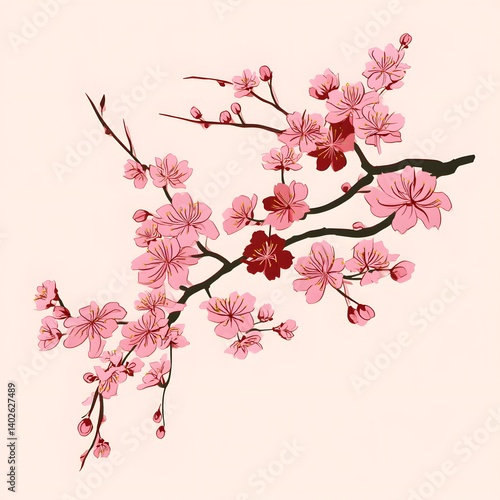 Naklejka premium Blooming Cherry Blossom Branch Showcasing Delicate Pink Flowers