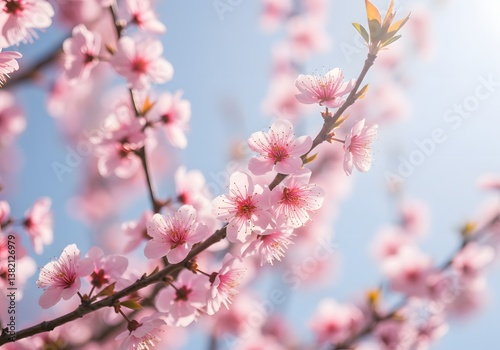 Obraz premium Blooming Cherry Blossom Branches Against a Blue Sky - Springtime Floral...