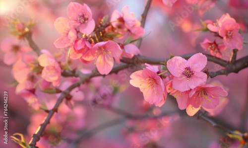 Obraz premium Blooming cherry blossom tree, closeup view, selective focus, bokeh
