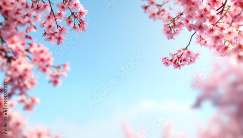 Fototapeta premium Blooming cherry blossoms against a clear sky