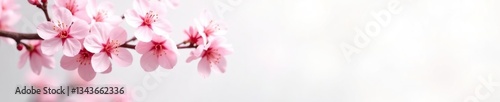 © Machita, Obraz premium Blooming cherry blossoms on a plain background, white, bloom, delicate