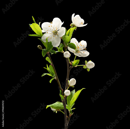 © Romario Ien, Fototapeta premium Blooming cherry branch on black background. Macro. Nature. High resolution product