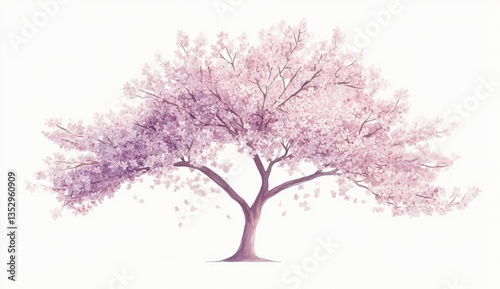 Fototapeta premium Blooming cherry tree, soft pink hues, delicate petals