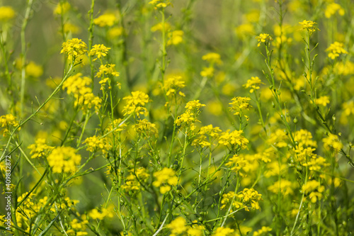 Fototapeta premium Blooming colza in summer in the field