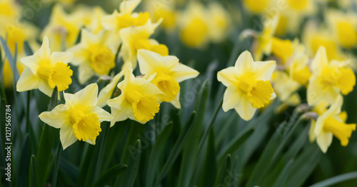 © Reddogs, Fototapeta premium Blooming daffodil flowers. Spring forward, springtime, easter floral banner.