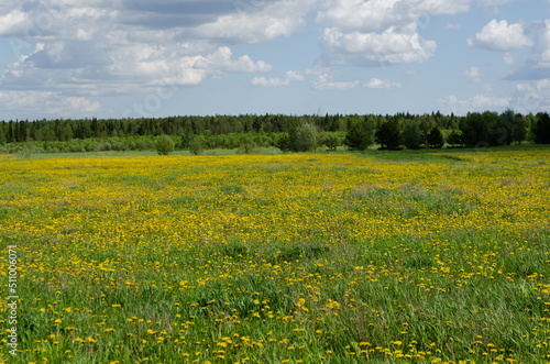 © TheRealLandscape, Fototapeta premium Blooming dandelion meadows in spring