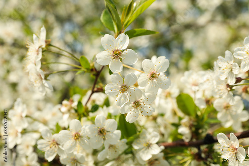 Fototapeta premium Blooming gardens in spring, blooming spring tree. Sunny spring day