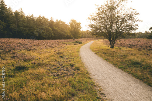 Fototapeta premium Blooming Heather fields, purple pink on the Veluwe Netherlands. Holland
