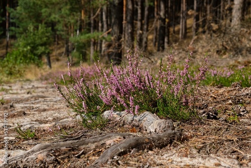 Obraz premium Blooming heathers in the forest