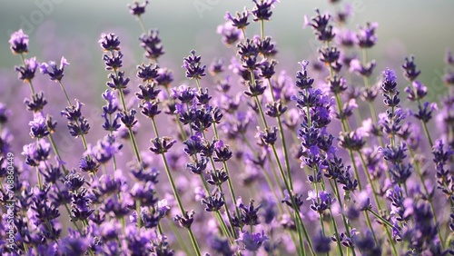 Naklejka premium Blooming lavender field. Beautiful purple flowers. Regional organic cultivation.