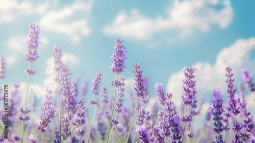 © Gambar Upi, Naklejka premium Blooming lavender field under blue sky
