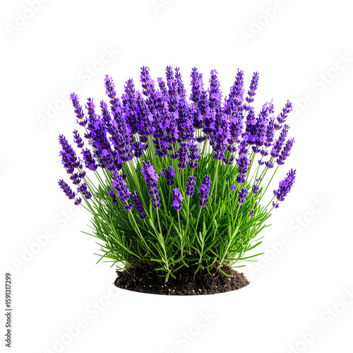 Fototapeta premium Blooming lavender plant with green leaves, isolated on transparent background
