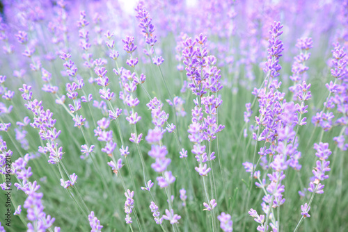 Naklejka premium Blooming lavender. Soft focus. Blurred background.