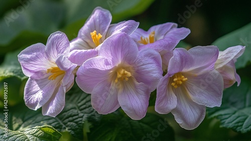 Obraz premium Blooming light purple flower cluster, sunny garden foliage, floral garden...