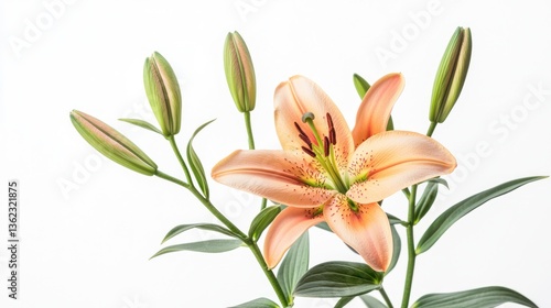 © Royal, Naklejka premium Blooming Lilies with Buds, Isolated Clean White Background