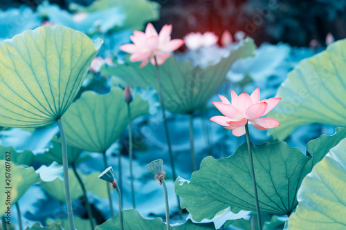 © xiaoliangge, Fototapeta premium blooming lotus flower in garden pond