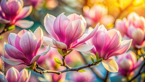 © Man888, Fototapeta premium Blooming Magnolia Flowers: Springtime Elegance in Pink and White