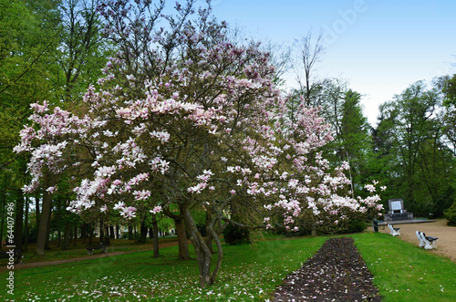 © babetka, Fototapeta premium Blooming Magnolia soulangiana tree with pink flowers in spring