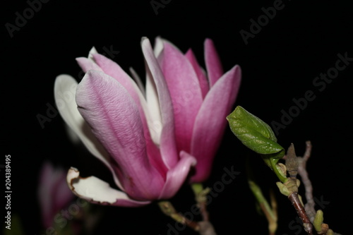 © Yuliya, Fototapeta premium Blooming magnolia. Spring. Night.
