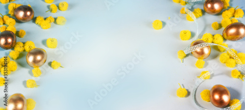 © Guschenkova, Obraz premium Blooming mimosa branches with easter eggs