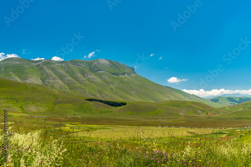 © zakaz86, Fototapeta premium Blooming of lentil on Castelluccio di Norcia plain