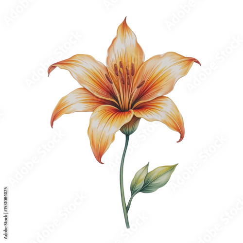 © Phansika, Naklejka premium Blooming orange lily close-up in nature botanical art for home decor vibrant floral illustration
