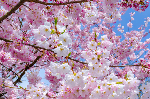 © Hana Design, Obraz premium Blooming pink cherry blossom trees
