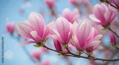 © Feb, Obraz premium Blooming Pink Flowers Against Blue Sky in Spring Season