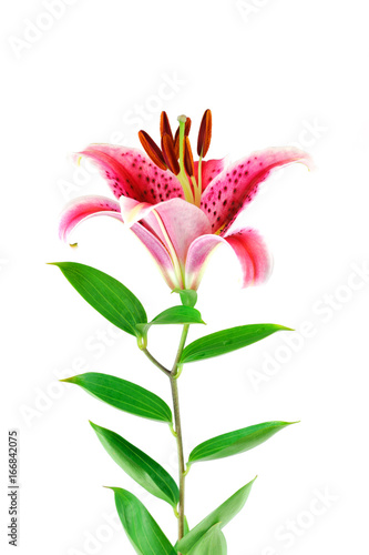 Fototapeta premium blooming pink lily isolated on white background
