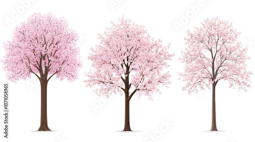 © Johnathan, Fototapeta premium Blooming Pink Sakura Trees in a Serene Spring Setting Generative AI