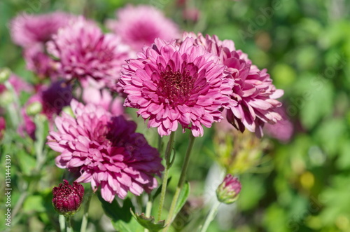Fototapeta premium Blooming pink spray chrysanthemum closeup