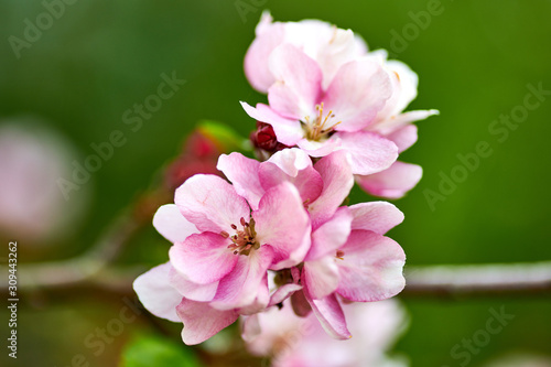 © Photo, Fototapeta premium Blooming pink-white garden tree apple tree in garden in spring