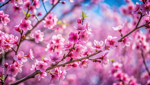 © prapatsorn, Fototapeta premium Blooming Plum Tree Branches, Spring Blossom, Delicate Pink Flowers, Natural Light, Candid Photography