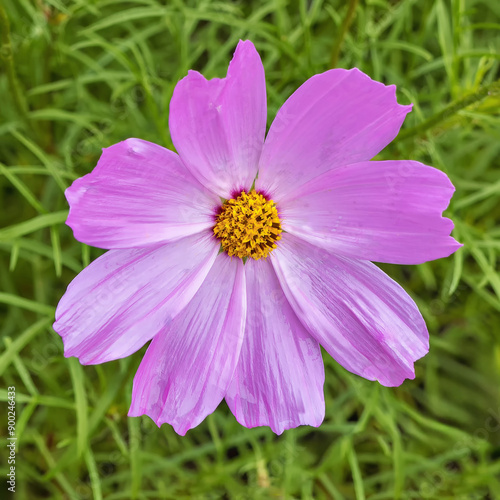 Obraz premium Blooming purple cosmos flower with a yellow center