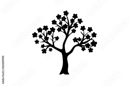 © MdHabibur, Obraz premium Blooming Quince Tree Silhouette on White Background