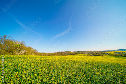 © luchschenF, Obraz premium Blooming rapeseed field on a clear summer day