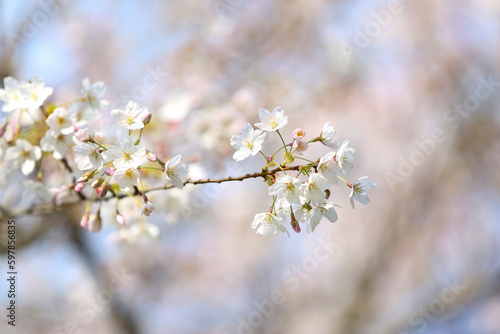 Fototapeta premium Blooming Sakura branch on spring day, closeup