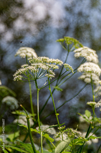 © topolov_nick, Fototapeta premium Blooming Sambucus flowers near the pond.