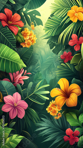 Naklejka premium Blooming Serenity - Vibrant Garden Banner with Colorful Flowers and Plants on...