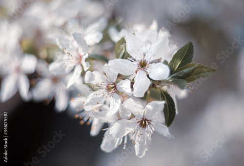 © misu, Obraz premium Blooming spring tree branches with white flowers