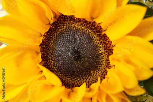© Freer, Obraz premium blooming sunflower close up horizontal composition