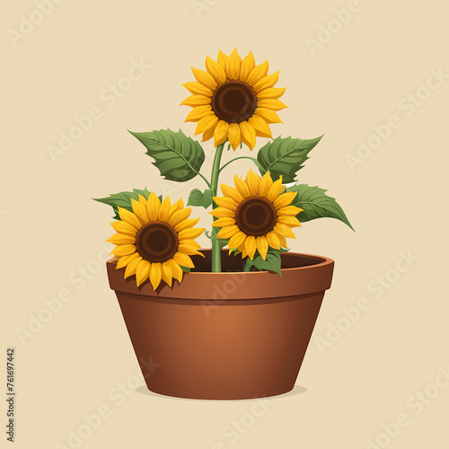 © jAnI, Obraz premium Blooming sunflower painting in pot on isolated background
