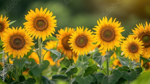 © CreativeBro, Fototapeta premium Blooming sunflowers on a natural background