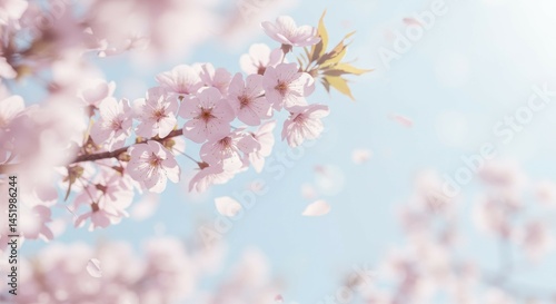 Fototapeta premium Blooming Tree with Falling Petals on a Sunny Day