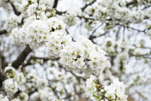© Viktoria, Obraz premium Blooming trees close-up. white blossom tree