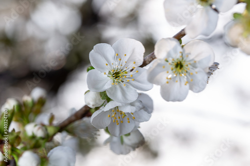 Obraz premium Blooming white cherry close up