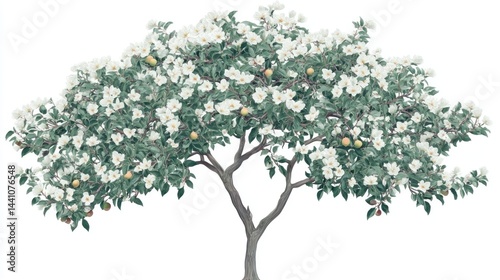 © SlashStd, Fototapeta premium Blooming white flower tree, isolated, spring, nature background