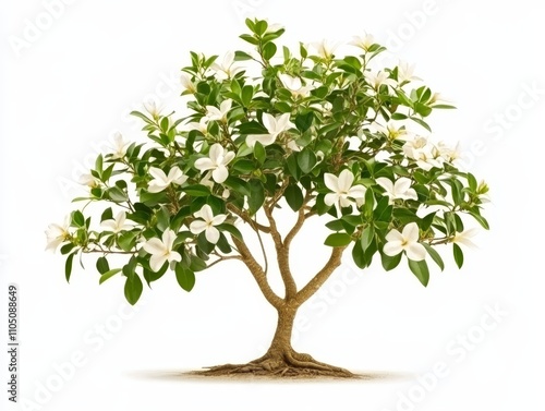 Fototapeta premium Blooming White Gardenia Bonsai Tree Isolated on White