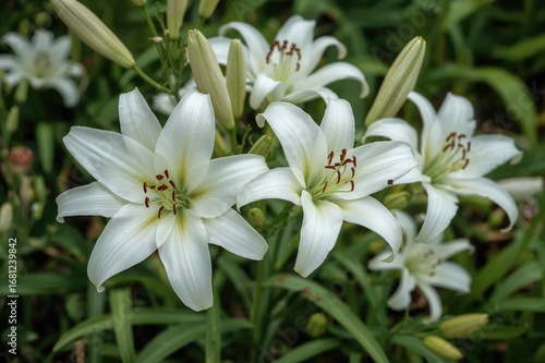 © VRVisionary, Fototapeta premium Blooming white lilies in a garden setting